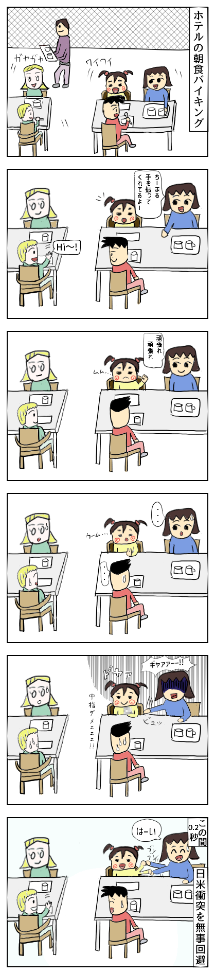 日米平和は守られた! manga X Facebook はてブ LINE コピー 2026.02.19 もちろん0歳児なので中指立てる意味など理解してないですからね!とはいえ親としてニコニコして見ているわけにもいかないので、ぽこがぼかしてくれました。あぶないあぶない。 今回の記事を書いていて思ったけど、ジェスチャーの意味国ごとに違うからより気をつけねば!調べてみたらギリシャでは日本でみんなよくやってるピースが悪い意味を指すとのこと。みんなもどこか外国に行くときは気を付けてね!